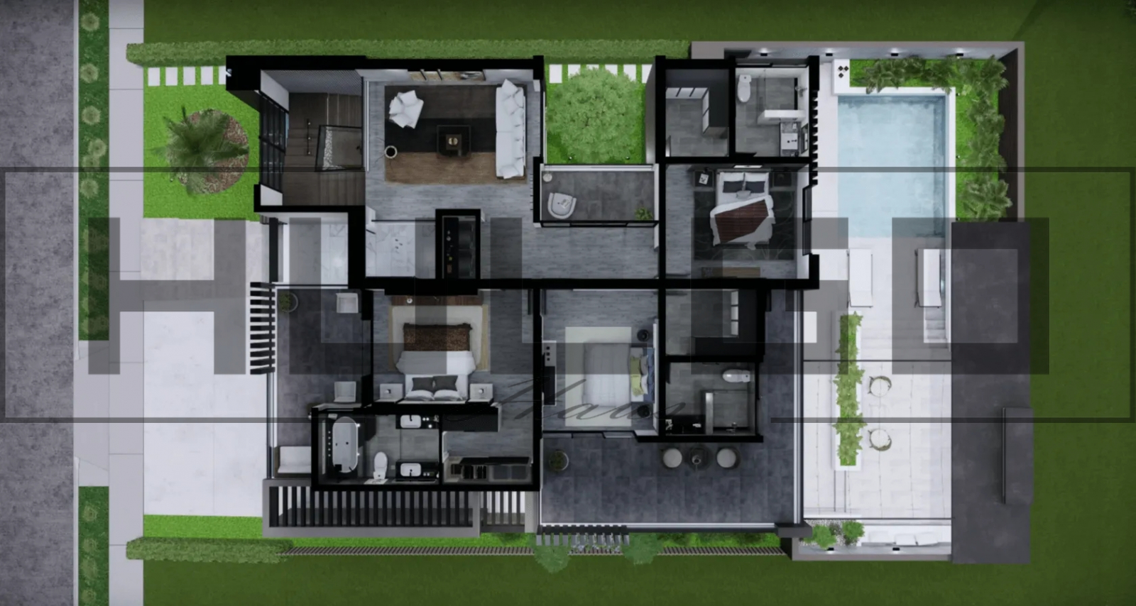 Imaginile 3D si Video 3D oferă o perspectivă realistă asupra aspectului final al casei, inclusiv fațada și unele spații interioare. Aceste vizualizări ajută la înțelegerea designului și a stilului arhitectural propus.