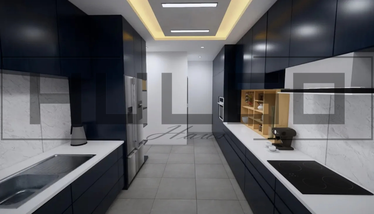 • Bucătăria este complet echipată cu aparatură de ultimă generație, având un design ergonomic și o insulă centrală care poate fi utilizată ca spațiu de lucru sau zonă de socializare.