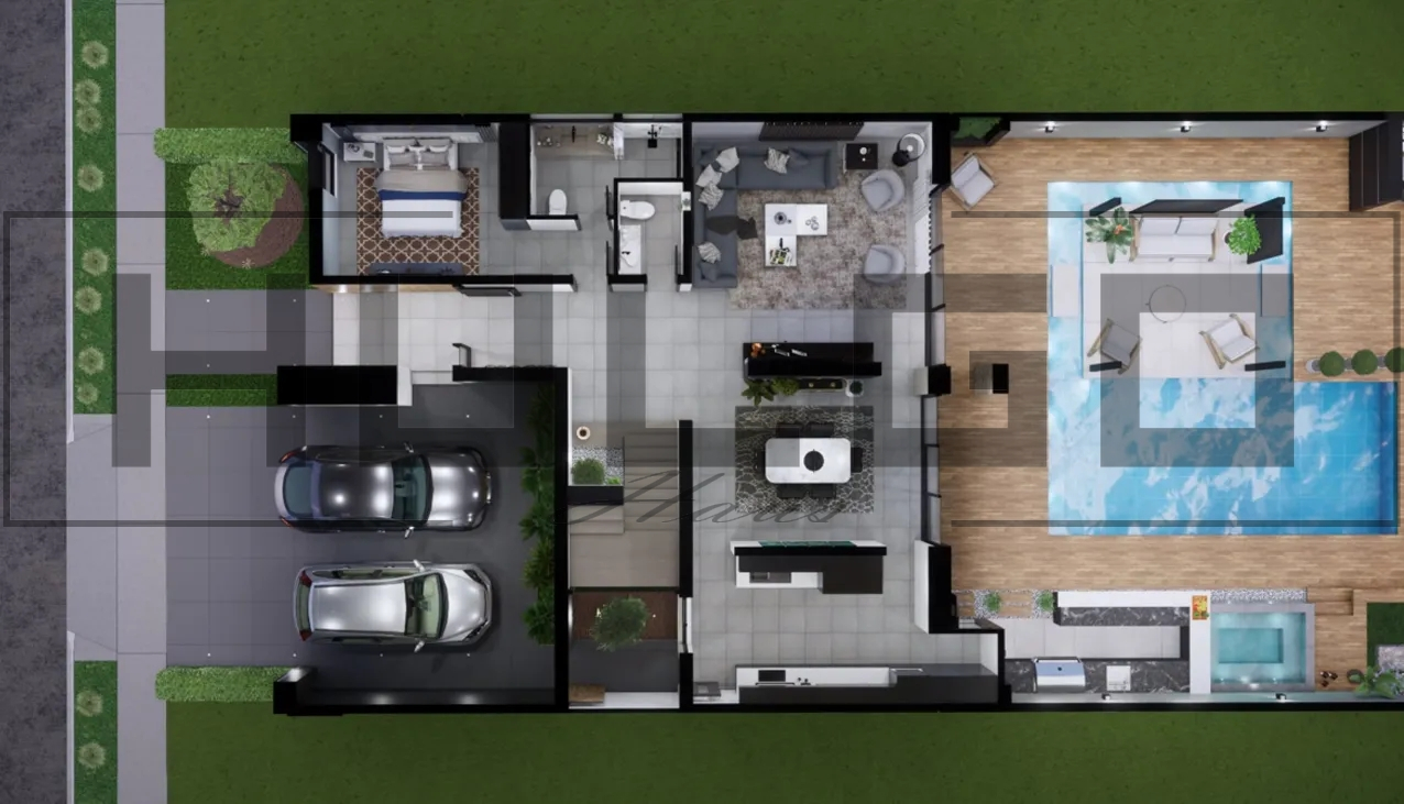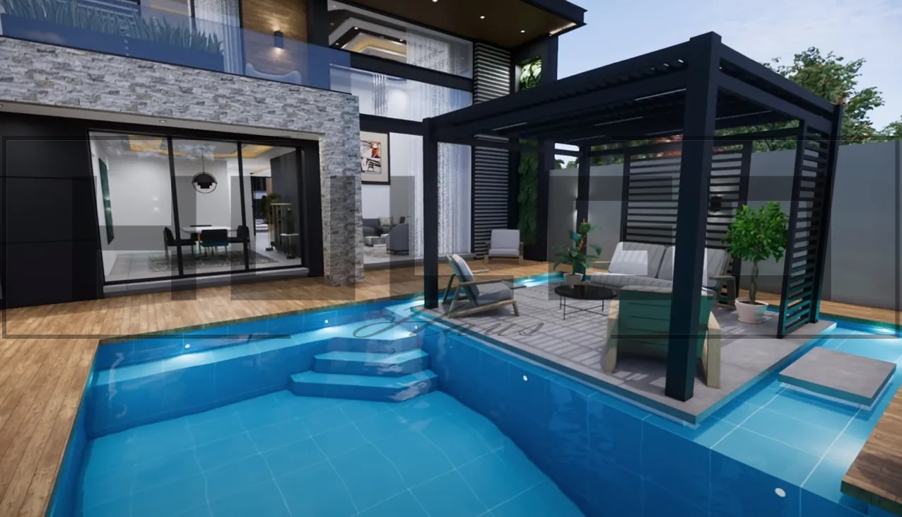 Imaginile 3D si Video 3D oferă o perspectivă realistă asupra aspectului final al casei, inclusiv fațada și unele spații interioare. Aceste vizualizări ajută la înțelegerea designului și a stilului arhitectural propus.