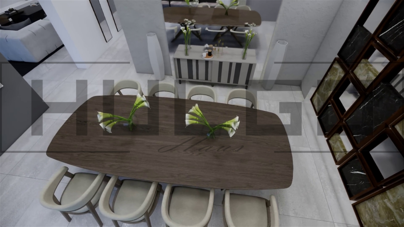 Dining Room: Sala de mese este un spațiu separat, amplasat strategic pentru a oferi intimitate, dar și acces facil din bucătărie și living.
