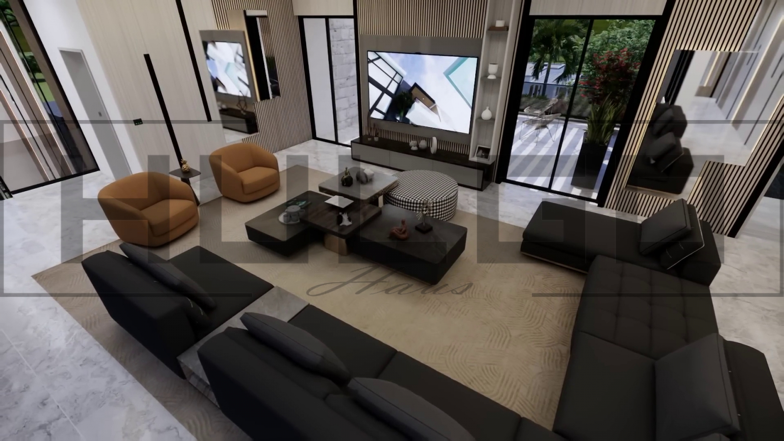 Imaginile 3D si Video 3D oferă o perspectivă realistă asupra aspectului final al casei, inclusiv fațada și unele spații interioare. Aceste vizualizări ajută la înțelegerea designului și a stilului arhitectural propus.