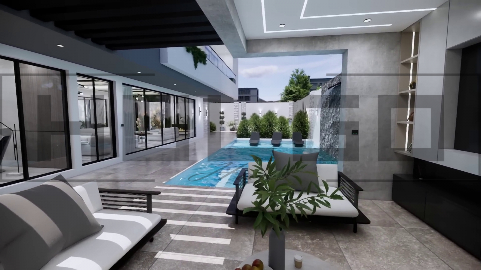 Piscina este una dintre principalele atracții ale acestui proiect, fiind completată de o zonă de șezlonguri și un bar în aer liber.
