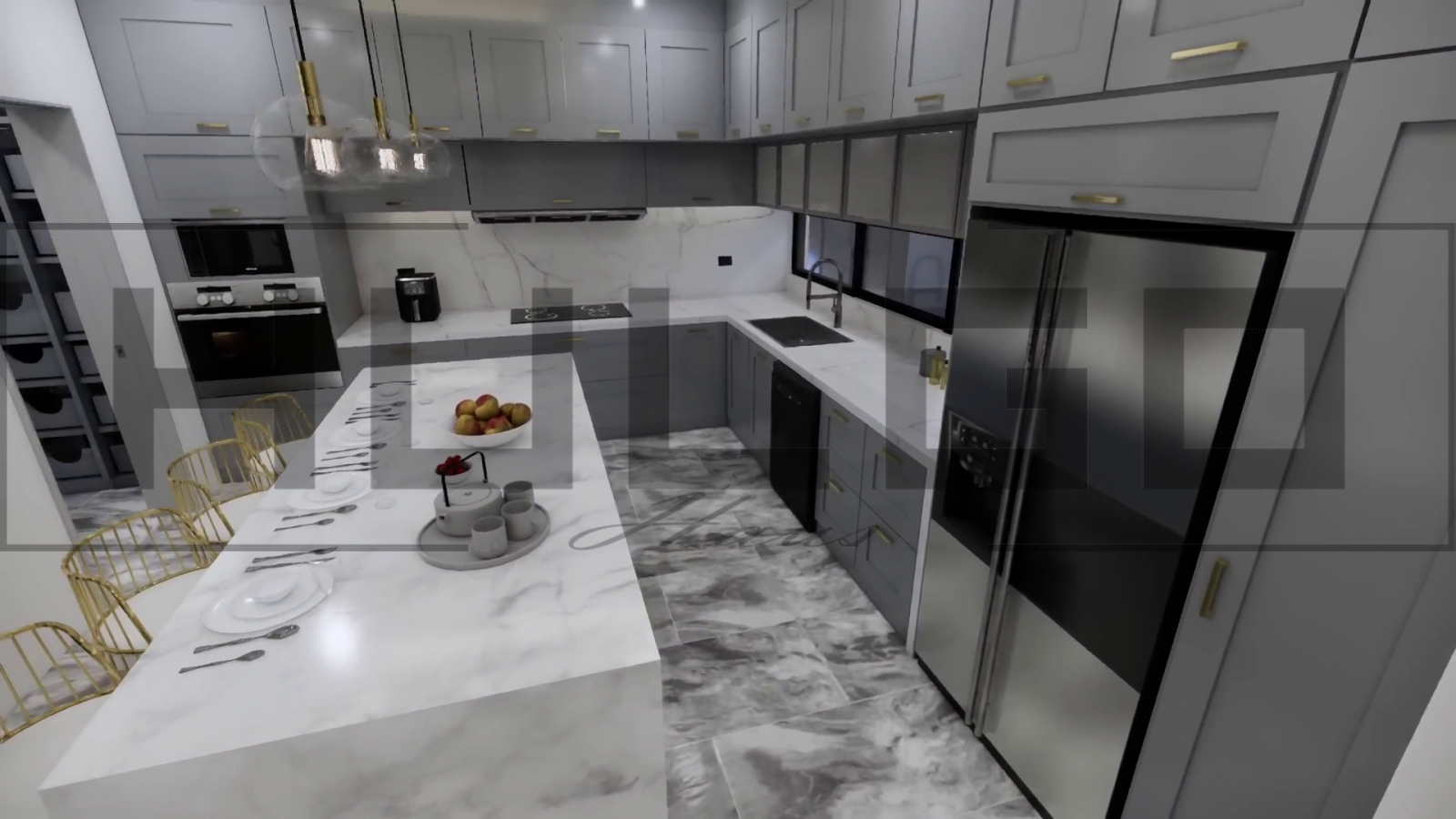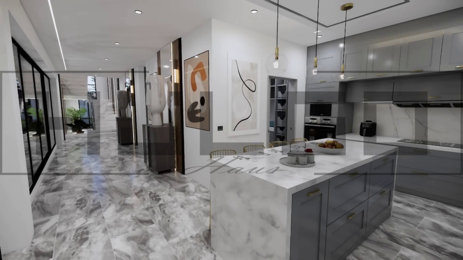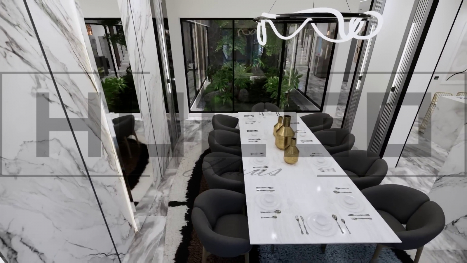 Dining și bucătăria – Zona de luat masa este gândită pentru a găzdui mese ample, fiind conectată direct cu o bucătărie ultra-modernă, echipată cu electrocasnice de ultimă generație. Insula centrală este perfectă pentru pregătirea meselor sau pentru întâlniri informale.