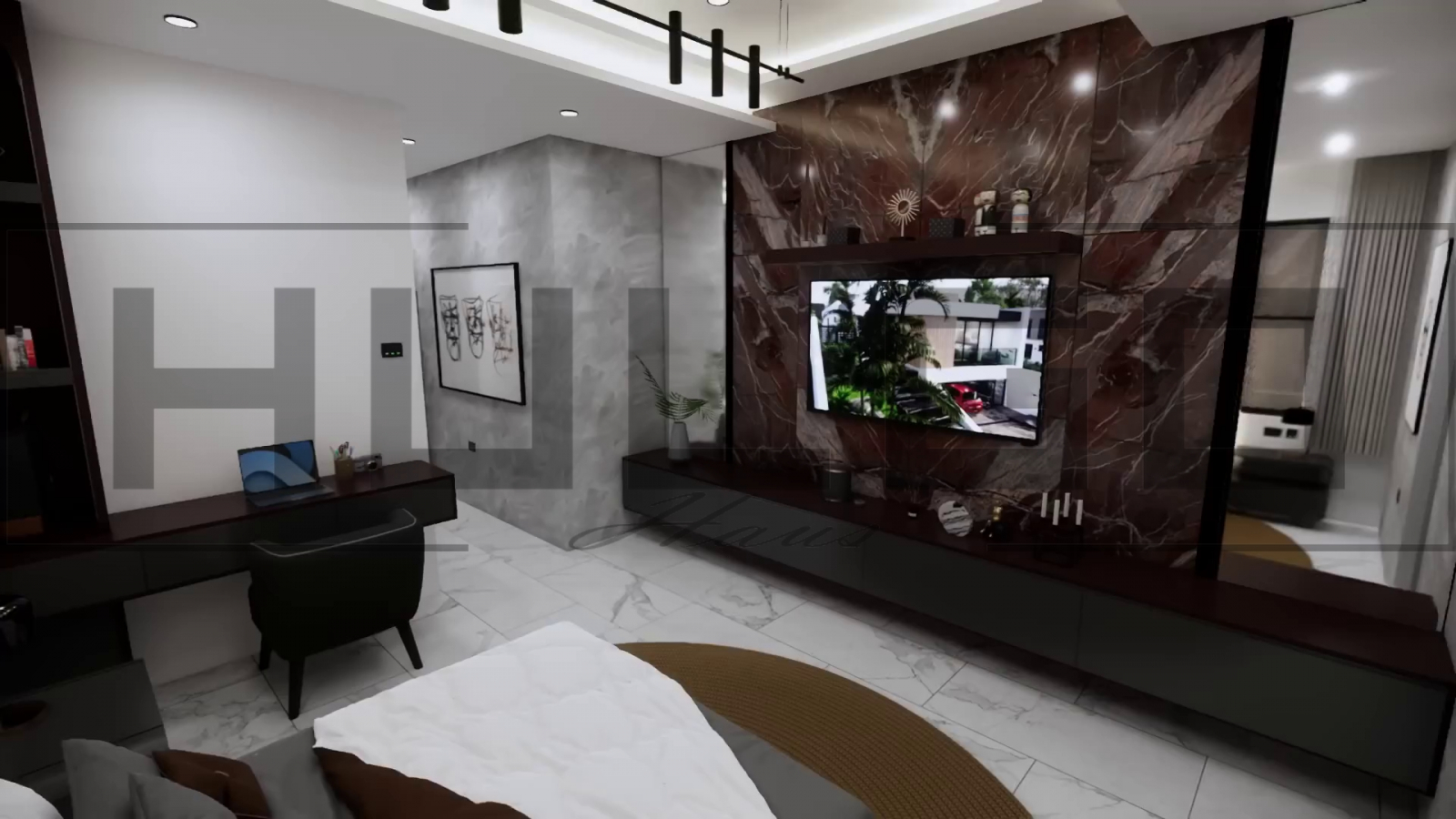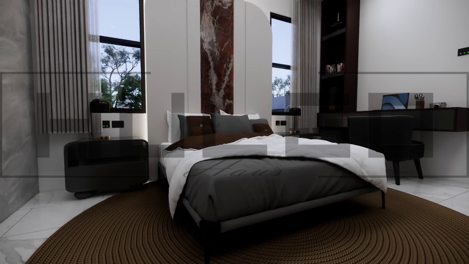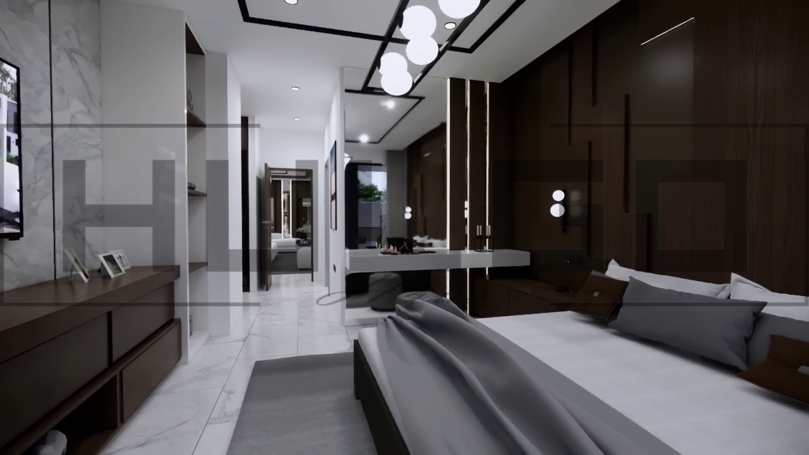Dormitor matrimonial: Dormitorul principal este un adevărat sanctuar, cu un dressing generos și o baie proprie de lux, dotată cu finisaje premium.