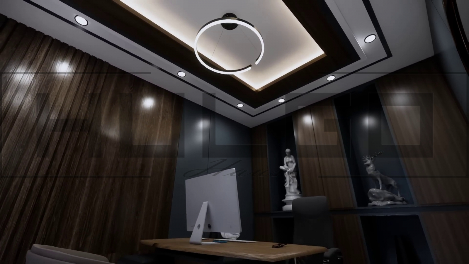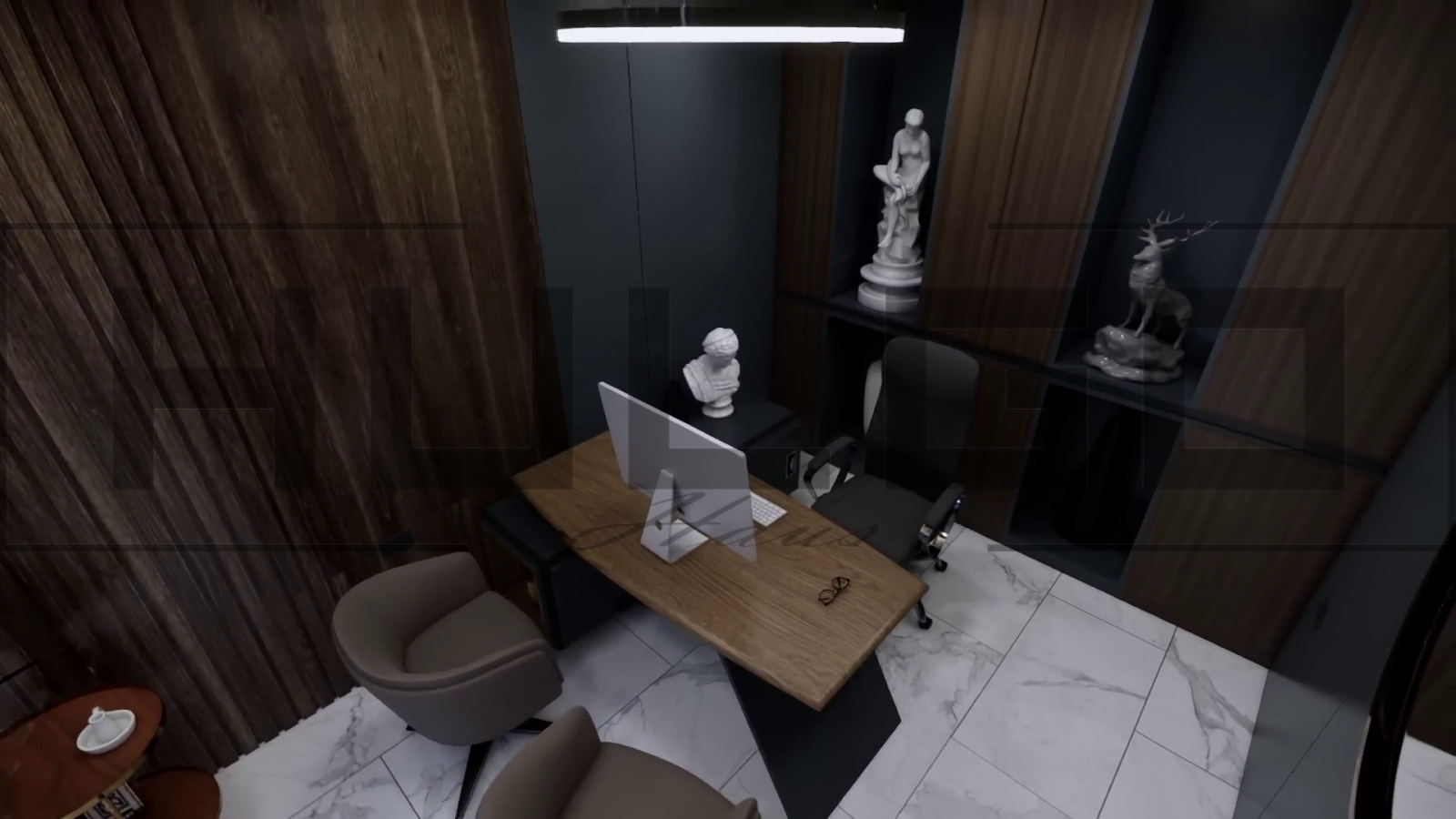 Birou: Un birou elegant, amplasat strategic la parter, oferă liniște și intimitate pentru activități profesionale.