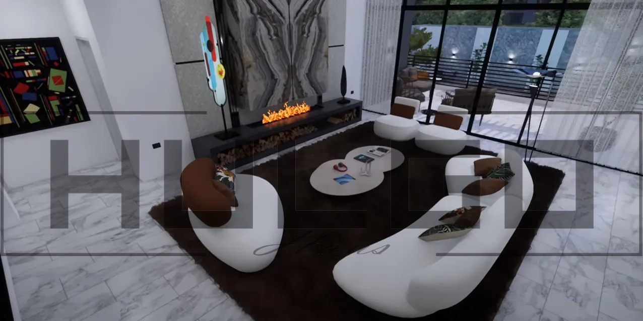 • Living și Zona de Socializare: Livingul este generos și decorat cu mobilier modern, oferind un spațiu primitor pentru oaspeți și momente de relaxare. Este conectat cu alte zone funcționale, creând un ambient fluid și armonios.