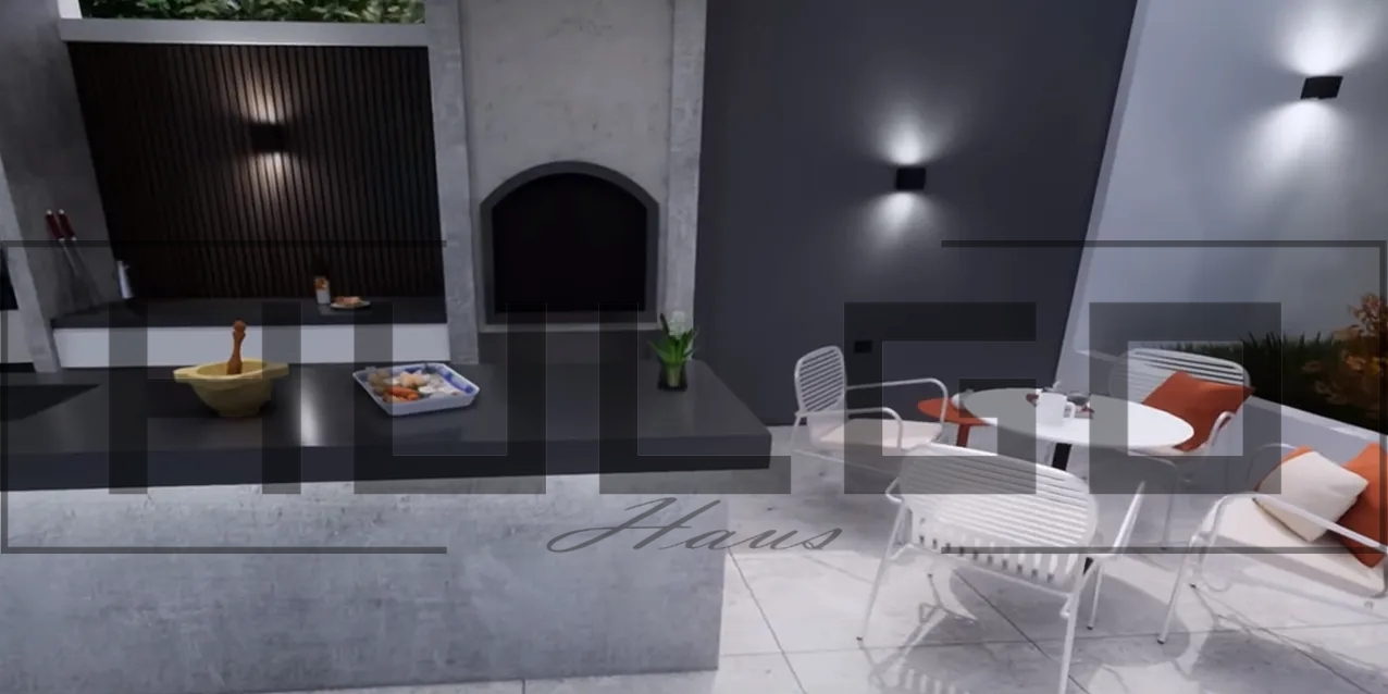 Pentru pasionații de gătit în aer liber, zona de grătar și bucătăria exterioară oferă toate facilitățile necesare pentru organizarea de petreceri și mese în familie.