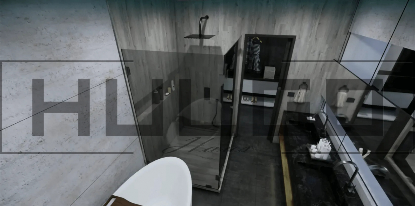 Holul de intrare, spațios și bine iluminat, oferă acces către toate zonele principale ale casei, evidențiind stilul modern al locuinței. Pardoseala din marmură și decorul minimalist creează o primire elegantă.