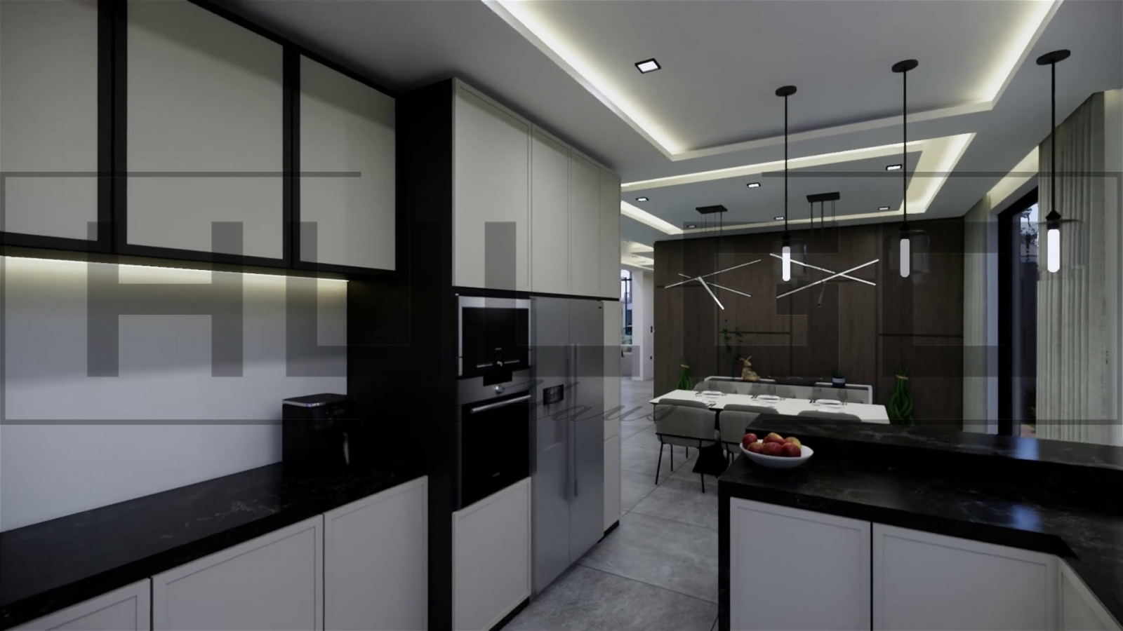 Bucătăria deschisă, complet utilată, se conectează perfect cu zona de dining.